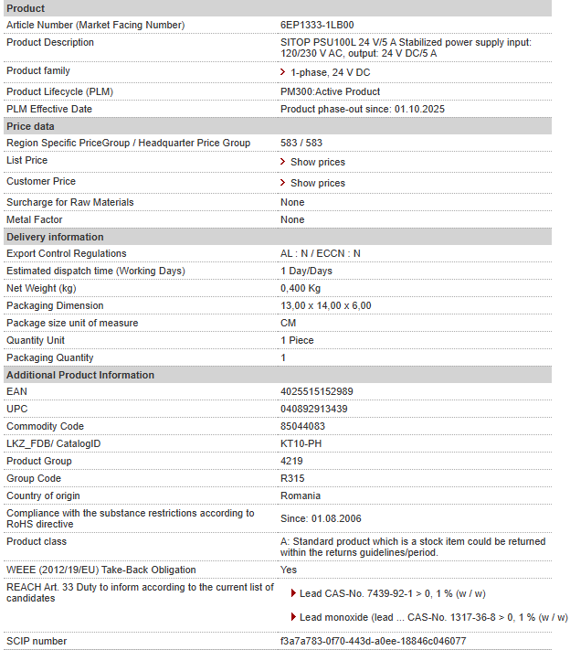 SITOP PSU100L 24 V/5 A Stabilized power supply input: 120/230 V AC, output: 24 V DC/5 A