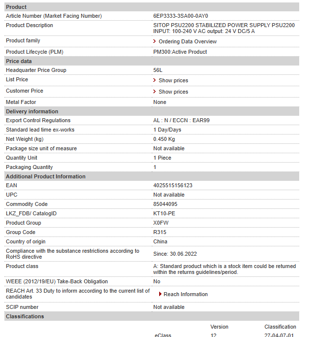 SITOP PSU2200 STABILIZED POWER SUPPLY PSU2200 INPUT: 100-240 V AC output: 24 V DC/5 A