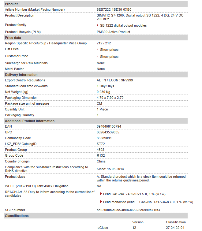 SIMATIC S7-1200, Digital output SB 1222, 4 DQ, 24 V DC 200 kHz