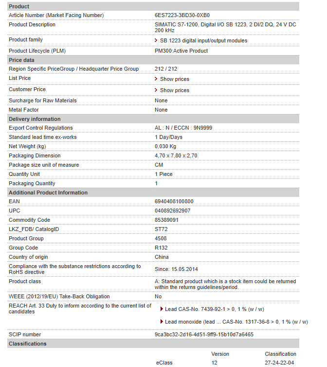 SIMATIC S7-1200, Digital I/O SB 1223, 2 DI/2 DQ, 24 V DC 200 kHz