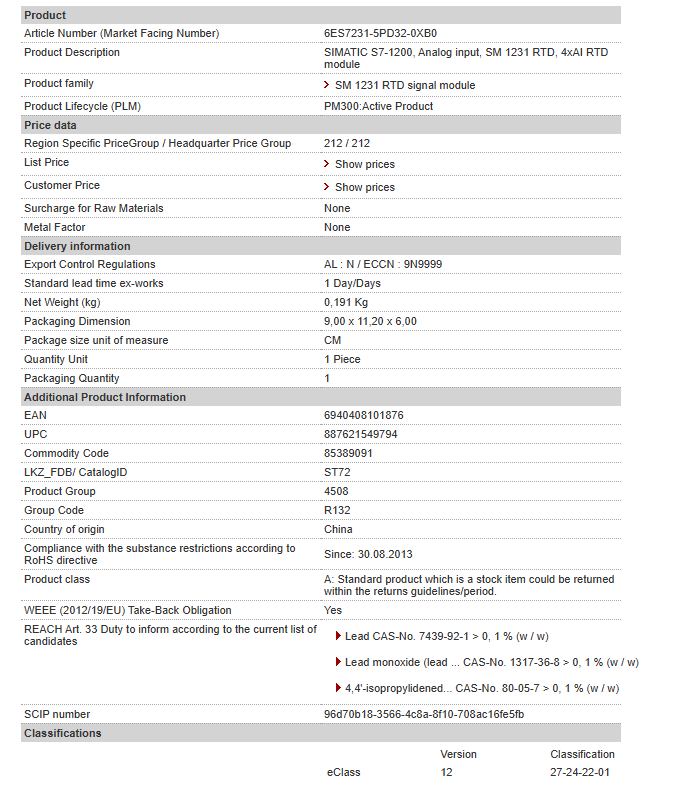 SIMATIC S7-1200, Analog input, SM 1231 RTD, 4xAI RTD module