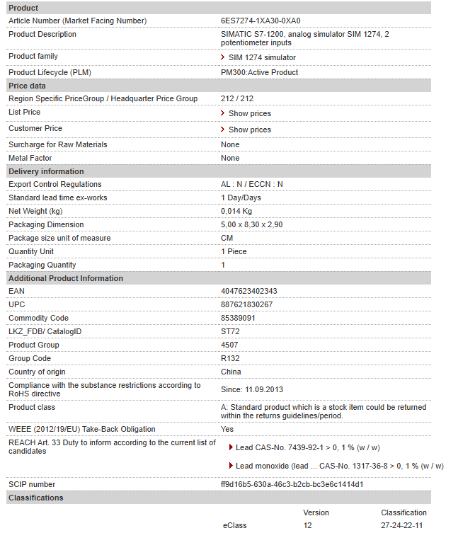 SIMATIC S7-1200, analog simulator SIM 1274, 2 potentiometer inputs