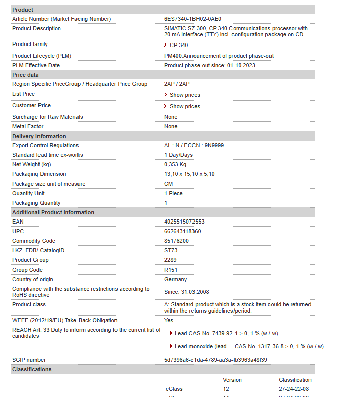 SIMATIC S7-300, CP 340 Communications processor with 20 mA interface (TTY) incl. configuration package on CD