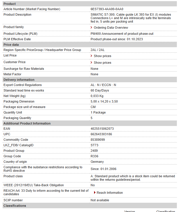 SIMATIC S7-300, Cable guide LK 393 for EX (I) modules Connections L+ and M are intrinsically safe the terminals fed in, 5 units per packing unit