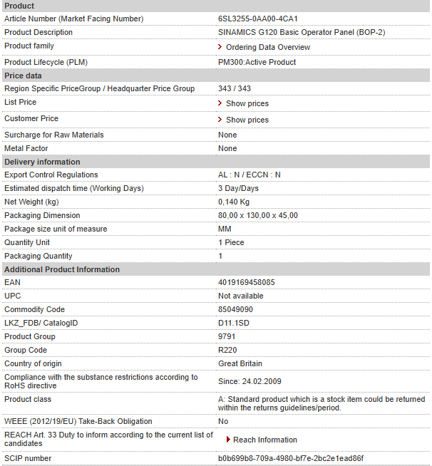 SINAMICS G120 Basic Operator Panel (BOP-2)