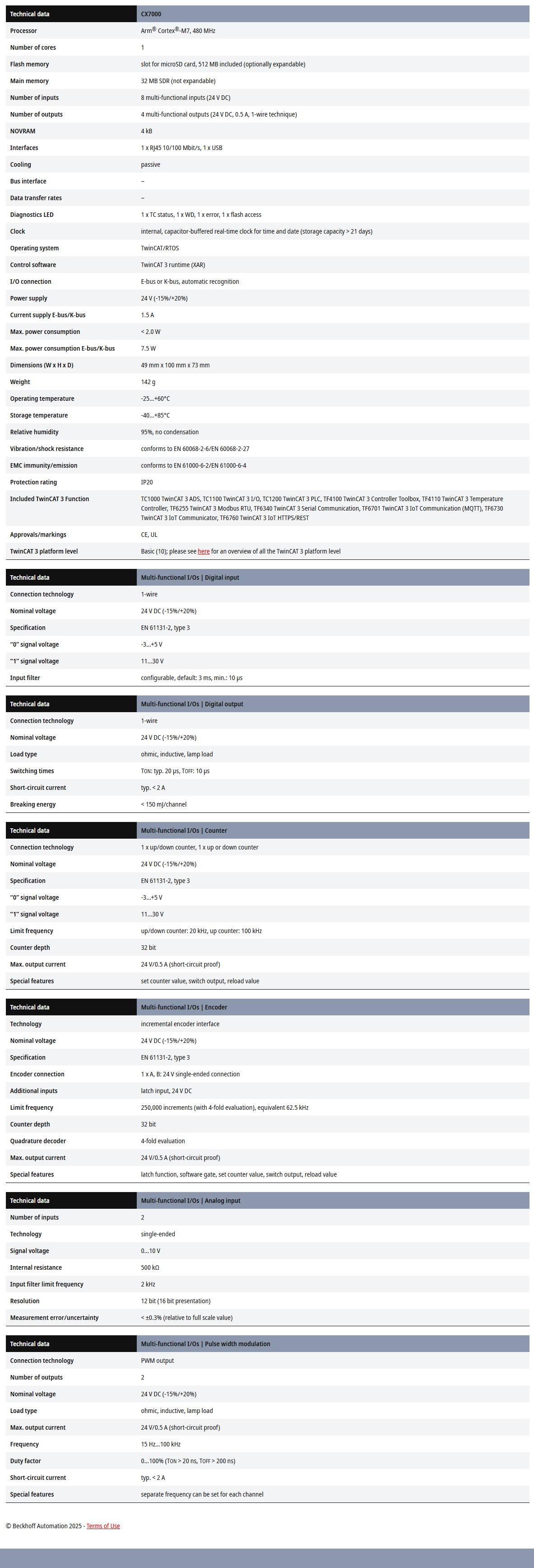 The CX7000 Embedded PC has an Arm® Cortex®-M7 single-core processor with 480 MHz. In the basic configuration, the CX7000 has a slot for a microSD card and an Ethernet interface.……