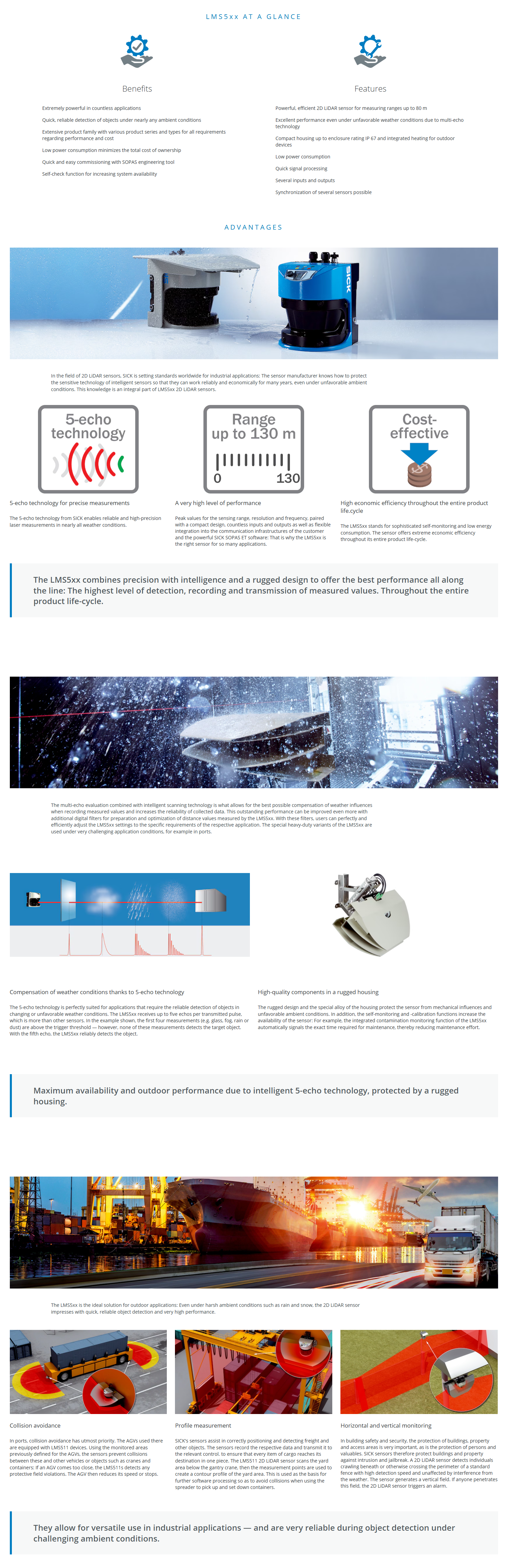 High-performance 2D LiDAR sensor for accurate detection of far away objects The LMS5xx 2D LiDAR sensor is the successor of the successful LMS2xx family. With numerous innovative functions, the L……