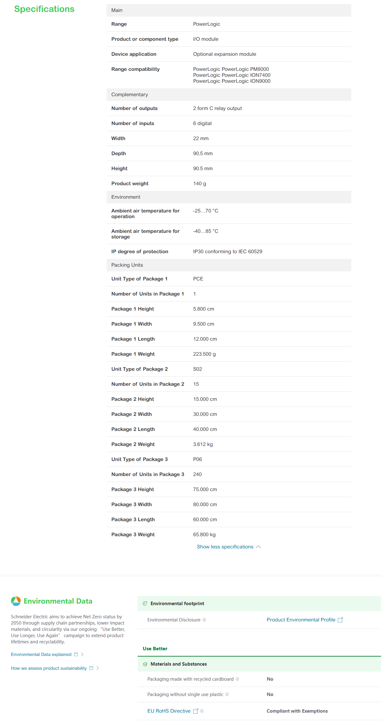 PowerLogic PM8000 – I/O Module – Digital – 6 Inputs + 2 relays outputs