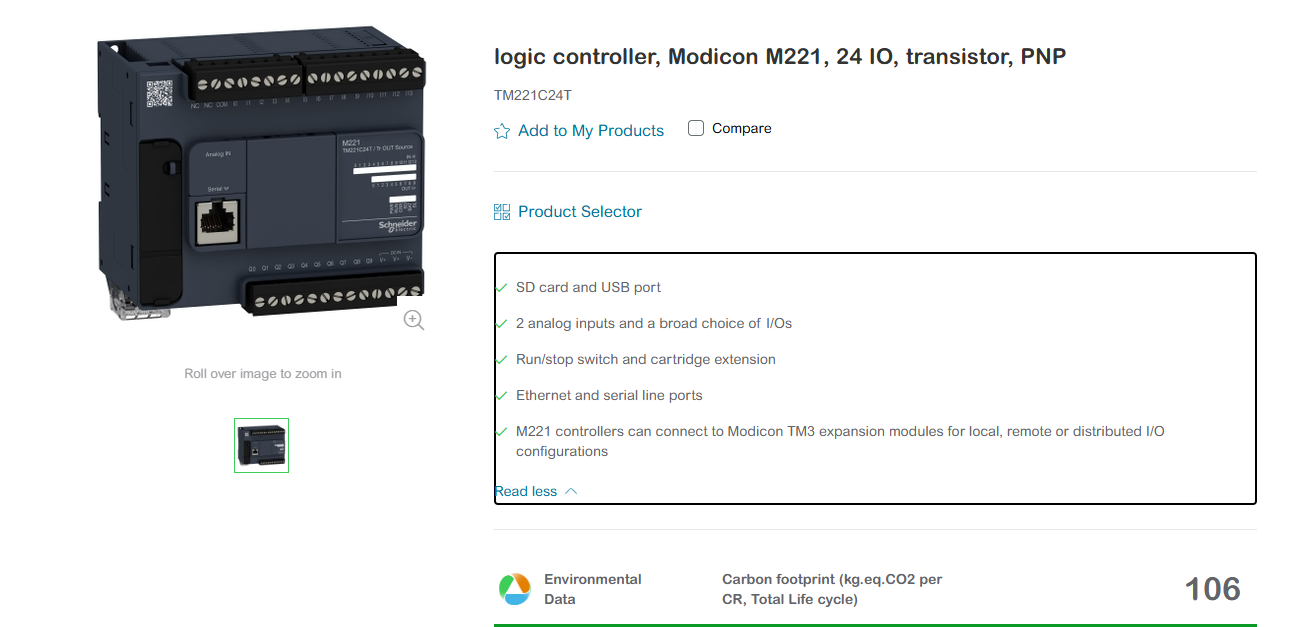 logic controller, Modicon M221, 24 IO, transistor, PNP