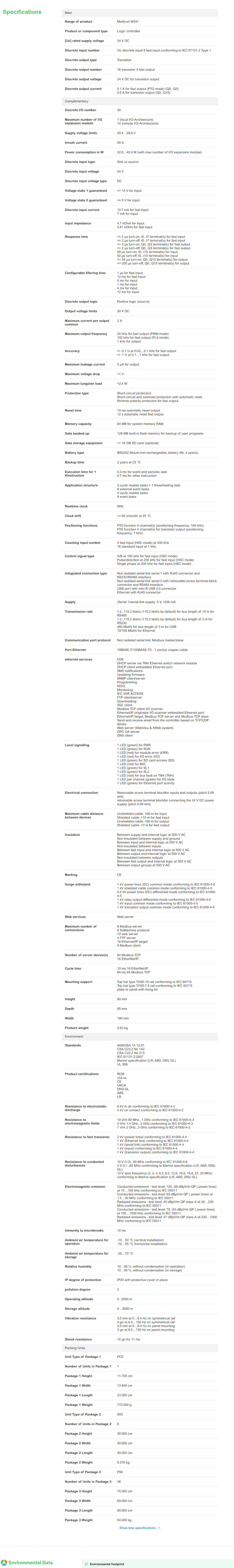 logic controller, Modicon M241, 40 IO, transistor, PNP, Ethernet