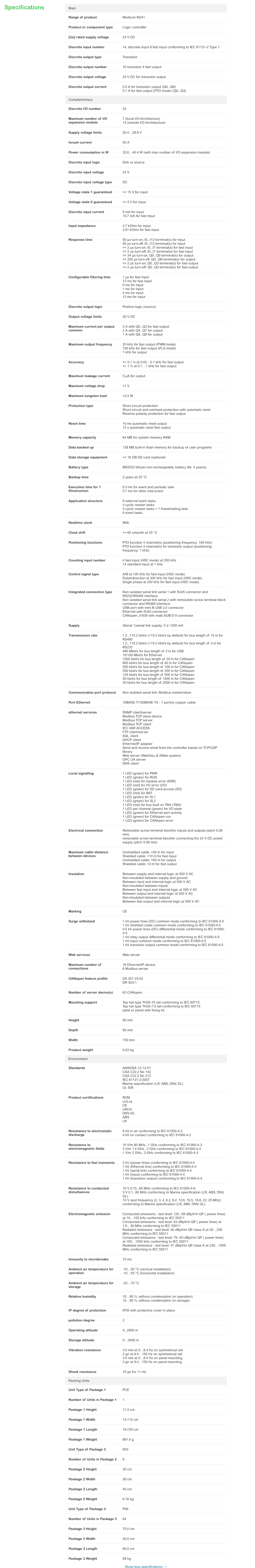 logic controller, Modicon M241, 24 IO, transistor, PNP, Ethernet, CAN master