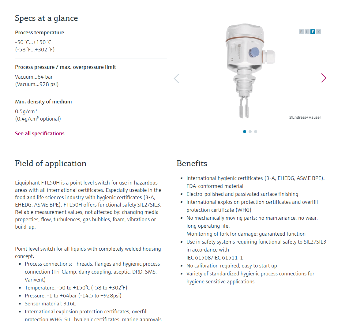 Compact vibration point level switch for liquids especially in the food and life sciences industry