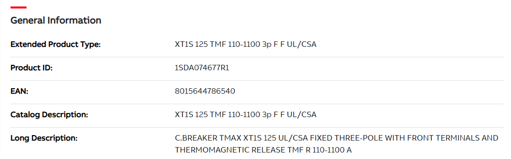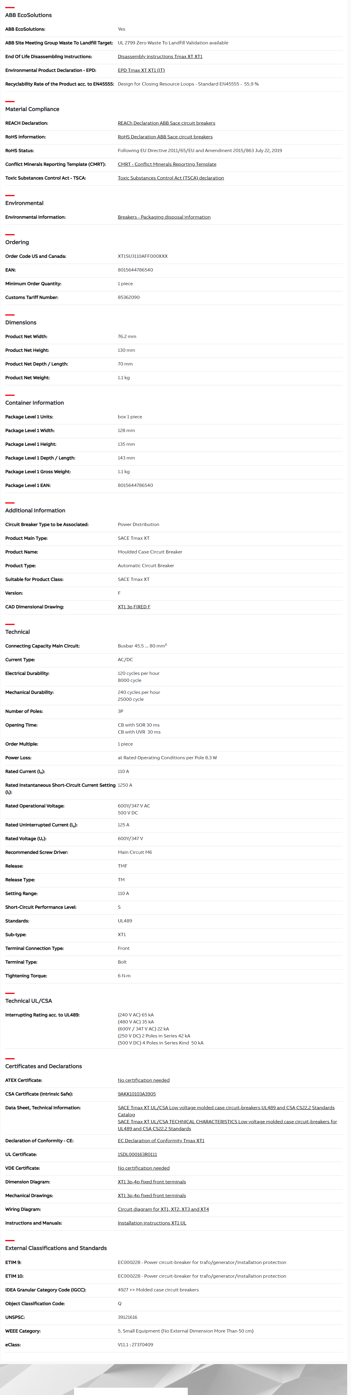 XT1S 125 TMF 110-1100 3p F F UL/CSA